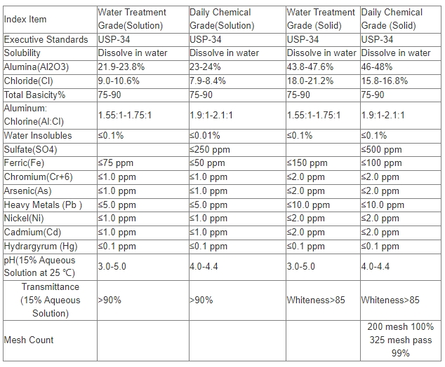 Wasseraufbereitungsprodukt Ach Aluminium Chlorhydrat