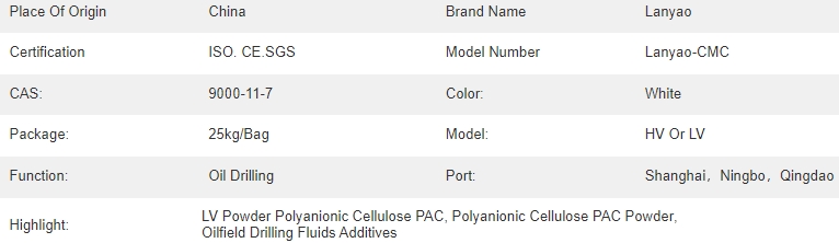 Polyanionisches Cellulose-Natriumsalz (PAC) ist ein weißes oder leicht gelbes Pulver, das ungiftig und geruchlos ist. Es kann sich in Wasser auflösen, eine gute Wärmestabilität und Salzbeständigkeit und starke antibakterielle Eigenschaften aufweist. PAC mit niedrigem Viskosität ist ein hochwertiges, niedriges Molekulargewicht und ein Cellulosepolymer mit niedrigem Viskosität, während ein hohes Viskositäts-PAC ein hochwertiges, hohes Molekulargewicht und ein hohes Viskositäts-Cellulosepolymer ist. Die mit diesem Produkt formulierte Schlammflüssigkeit weist eine gute Wasserverlustreduzierung, Hemmung und Hochtemperaturbeständigkeit auf. Häufig bei Ölbohrungen, insbesondere Salzwasserbohrungen und Offshore -Ölbohrungen.
